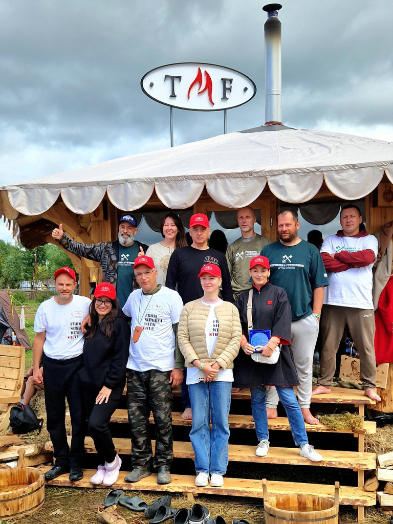 Наша баня стала настоящим центром притяжения: аромат кедрового сруба от наших партнеров Сорокин & Угренинов привлекал любителей попариться несмотря на дождь и холод. Особое внимание привлекла особенная банная печь TMF Джоконда, которая была представлена впервые.